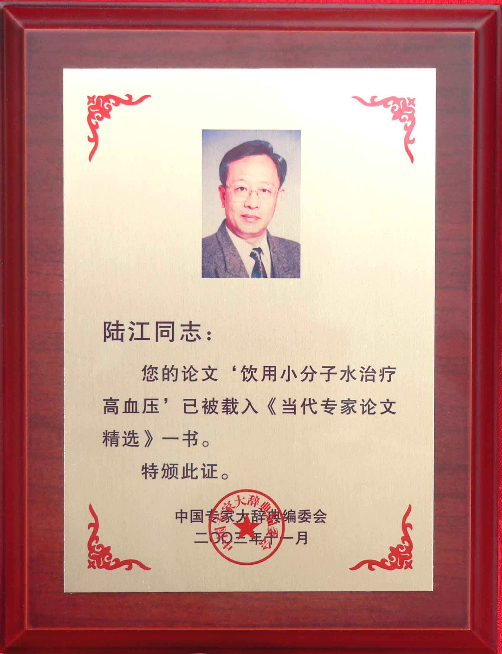 陸江的論文獲一等獎榮譽證書-- 陸江論文獲創新論文獎牌